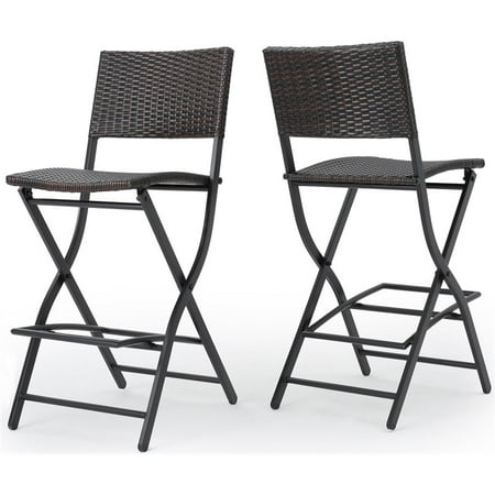 Noble House Margarita Outdoor Multi Brown Wicker Barstools (Set of 2)