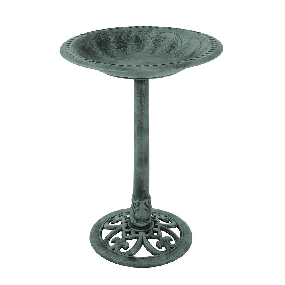 Pure Garden Weather-Resistant Antique Bird Bath with Stakes (Patina Green)