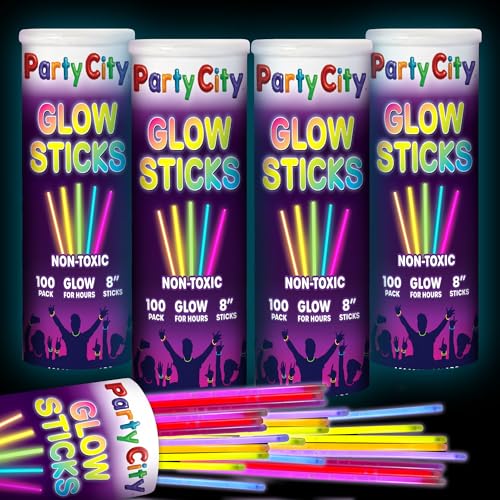 Party City 400 Glow Sticks Bulk Party Pack 8”– Neon Glow in the Dark Party Supplies, Glowsticks with Connectors Bracelets & Necklaces, Light Up Favors for Kids, Adults, Birthdays, Parties, Decorations
