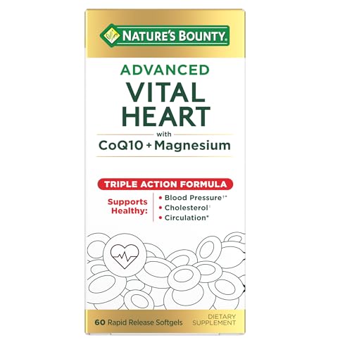 Nature’s Bounty Advanced Vital Heart with CoQ10 + Magnesium, Antioxidant, Supports Healthy Blood Pressure, Cholesterol, Circulation, Triple Action Formula, CoQ10, Magnesium Supplement, 60 Softgels