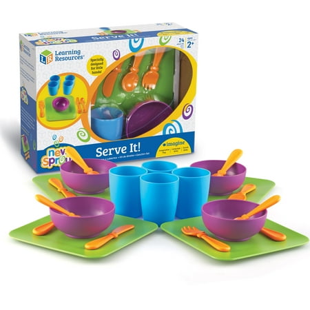 Learning Resources New Sprouts Serve It! My Very Own Dish Set - 24 Pieces, Boys and Girls Ages 2+, Pretend Dish Set, Pretend Play for Toddlers