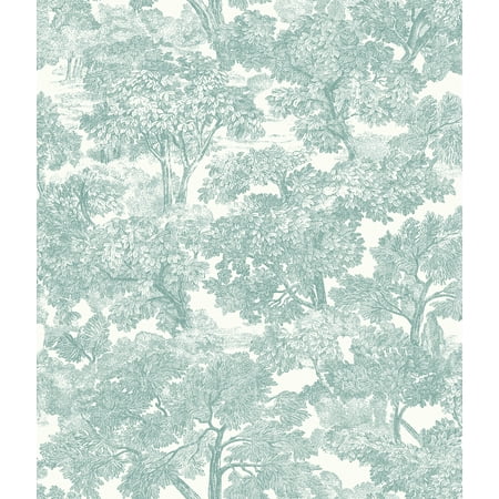 Chesapeake Spinney Teal Toile Prepasted High Performance Wallpaper, 20.5-in by 33-ft, 56.4 sq. ft.