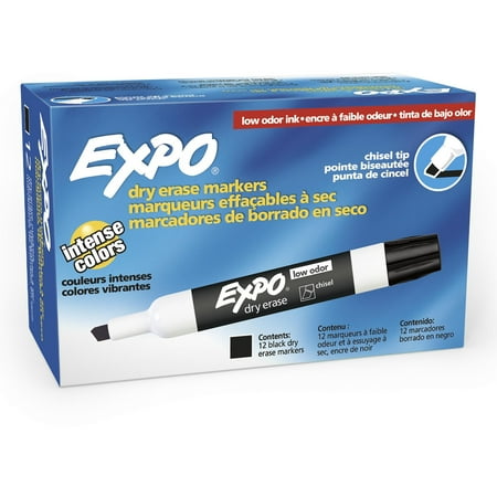 EXPO Low Odor Dry Erase Marker, Chisel Tip, Black, 12 Count
