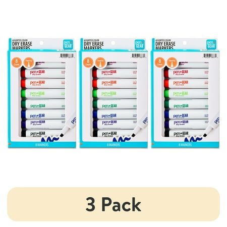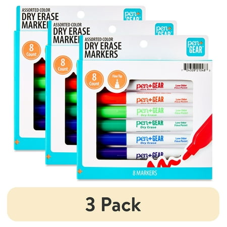 (3 pack) Pen+Gear Dry Erase Markers, Fine Tip, Assorted Colors, 8 Count