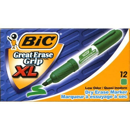 BIC Great Erase Grip Chisel Tip Dry Erase Marker, Green, Dozen
