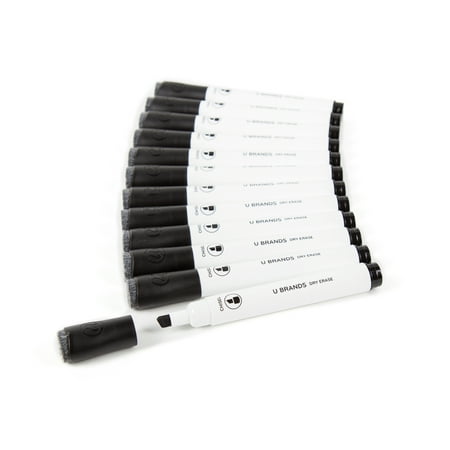 U Brands Dry-Erase Markers, Chisel Tip, Black, 12 Count