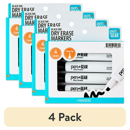(4 pack) Pen+Gear Dry Erase Markers, Chisel Tip, Black, 4-Pack