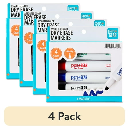 (4 pack) Pen+Gear Dry Erase Markers, Chisel Tip, Assorted Colors, 4 Count