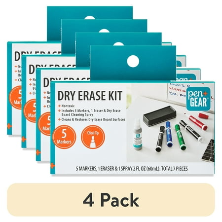 (4 pack) Pen+Gear Dry Erase Marker Kit, 7 Pieces, Includes Chisel Tip Assorted Ink Colors, Cleaner and Eraser