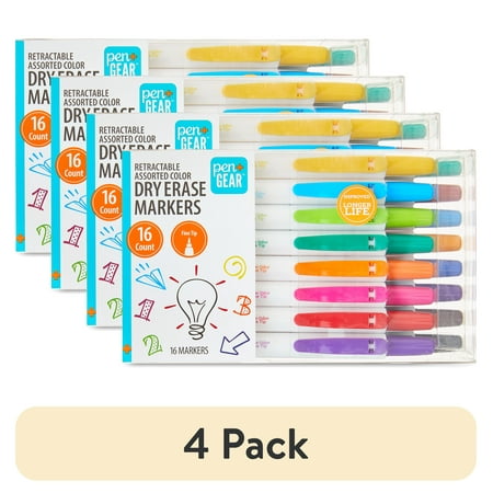 (4 pack) Pen+Gear Low-odor Retractable Dry Erase Markers, Fine Point, Muti Colors, 16 Count