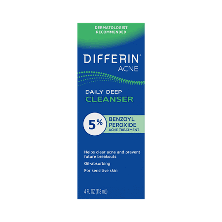 Differin Daily Deep Cleanser Face and Body Wash with 5% Benzoyl Peroxide, Dermatologist-Developed for Acne-Prone Skin, 4 oz