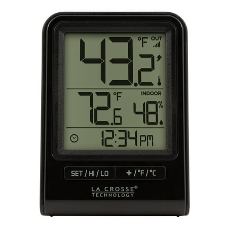 La Crosse Technology Black Wireless Temperature & Humidity Station with Time, 308-1409BT-CBP