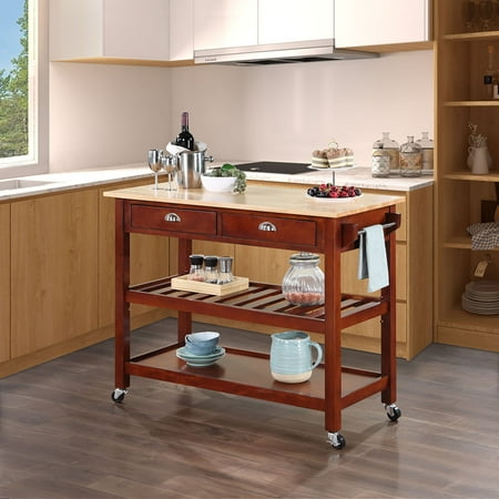 Convenience Concepts American Heritage 3 Tier Butcher Block Kitchen Cart with Drawers, Multiple Finishes