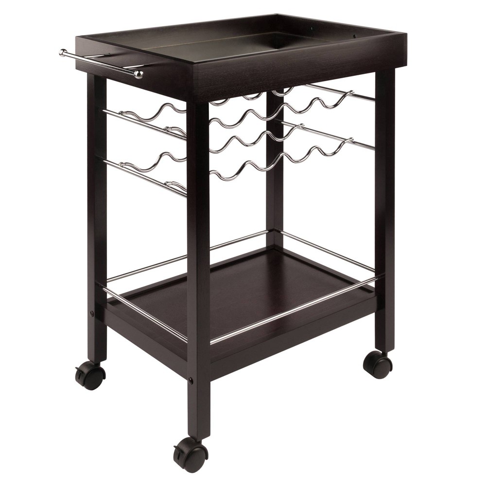 Johnnie Bar Cart Dark Espresso - Winsome: Hardwood Beverage Trolley with Wine Storage, 30 Day Limited Warranty
