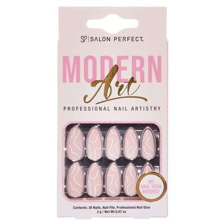 Salon Perfect Modern Art Press on Nails, Red Swirl Fake Nail Kit, 30 Pieces