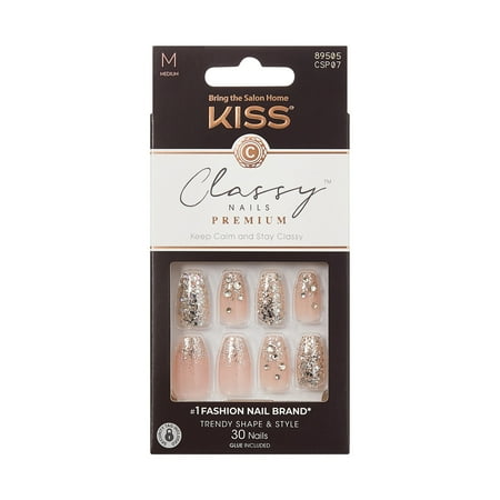 KISS Premium Classy Press On Nails, Pink & White, Medium Length, Almond Shape, 30 Ct.
