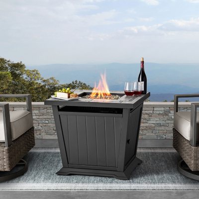 Legacy Heating 28 Inch Square fire pit ,Black wicker looking base, Table Lid Included