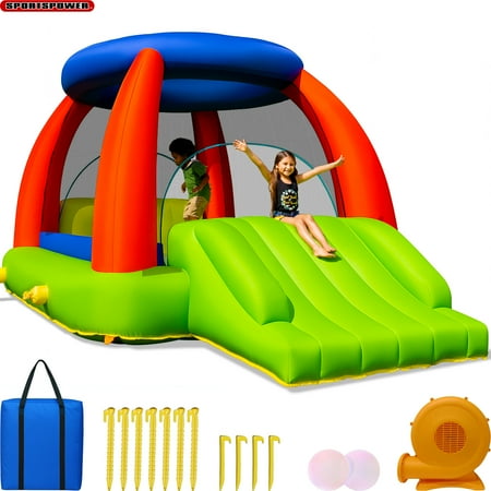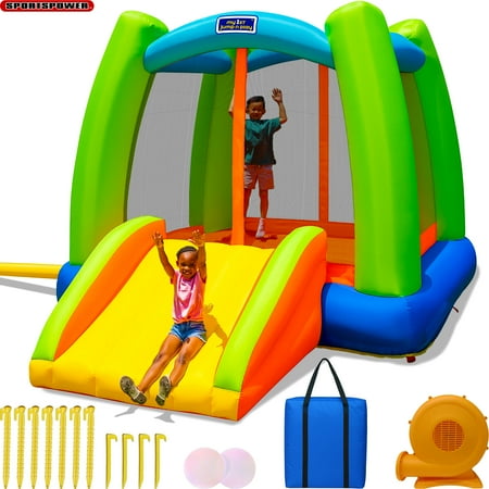 Sportspower My 1st Jump N Play Inflatable Bounce House for Kids with Slide & Mesh Shoe Pockets, 12' x 9' x 7.2', 400W Blower Included