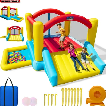 Sportspower My 1st Climb N Play Inflatable Bounce House for Kids with Slide, 12.4' x 6.7' x 8.7', Anchor Kit & 450W Blower Included