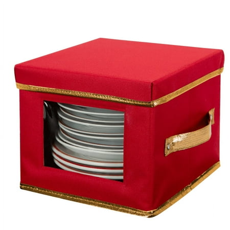 Simplify Polyester Holiday Salad Plate Square Storage Box with Felt Dividers, Red