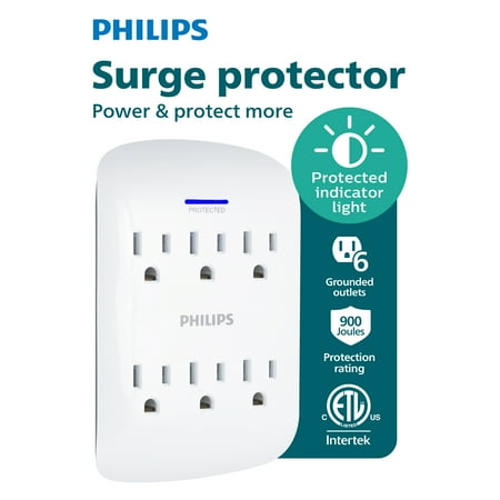 Philips 6-Outlet Surge Protector Tap, 900 Joules - SPP3461WA/37
