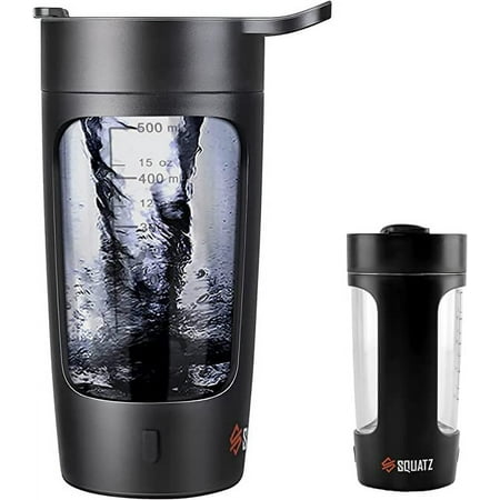 Squatz 22Oz Electric Shaker Bottle Automatic Blending Flask for Protein USB-Rechargeable (Black)