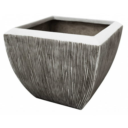 1" x 18" x 39" Gray Sandstone Ribbed Long Conical Planter With Light