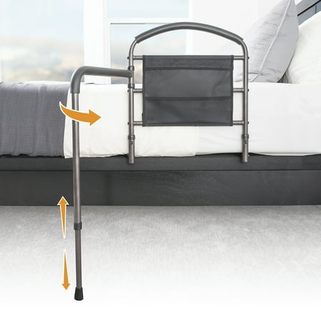 Able Life Sturdy Rail, Adjustable Stand Assist Bed Bar with Support Legs, Bedside Railing Mobility Aid with Organizer Pouch for Adults, Seniors, and Elderly, ASTM Safety Approved Bedrail