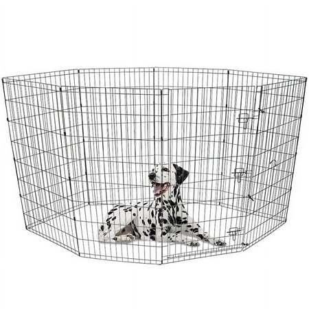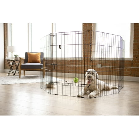 MidWest Home for Pets Metal Exercise Dog Playpen with Door, 8 Panels, 4 Ground Stakes, Foldable and Portable Pet Playpen, 42 Inch High, Black