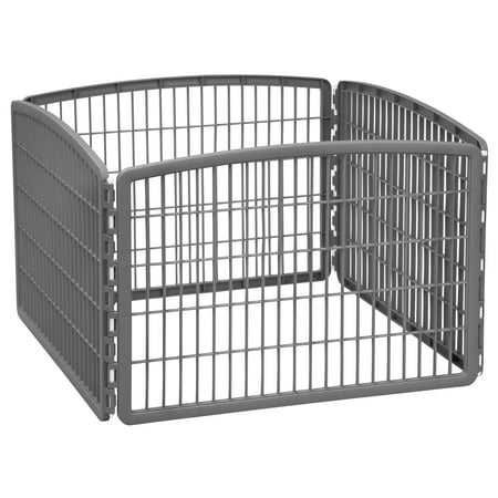 IRIS USA 24" Exercise 4-Panel Pet Playpen, Puppy Pet Small Medium Dog Pen Keep Pets Secure Easy Assemble Rust-Free Heavy-Duty Molded Plastic Customizable, Dark Gray