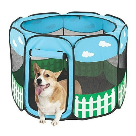 Pop-Up Pet Playpen - 38-Inch Indoor and Outdoor Dog Kennel with Carrying Bag - Portable Pet Enclosure for Dogs and Small Animals by PETMAKER (Blue)