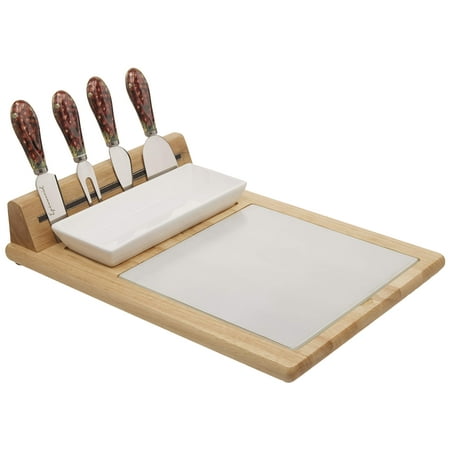 Cheese Board 5 piece Set with Stainless Steel Knives 8.6" x 8.25" by Classic Cuisine