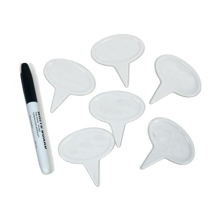 Vinotemp 6 Piece Dishwasher Safe Ceramic Cheese Marker Set with Black Pen, White