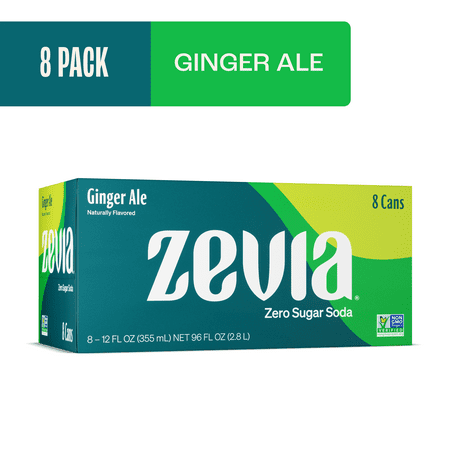 Zevia Zero Sugar, 0 Calorie Caffeine-Free Ginger Ale Soda Pop, 12 fl oz, 8 Pack Cans