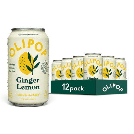 OLIPOP Prebiotic Soda, Ginger Lemon, 12 fl oz, 12 Pack, Refrigerated