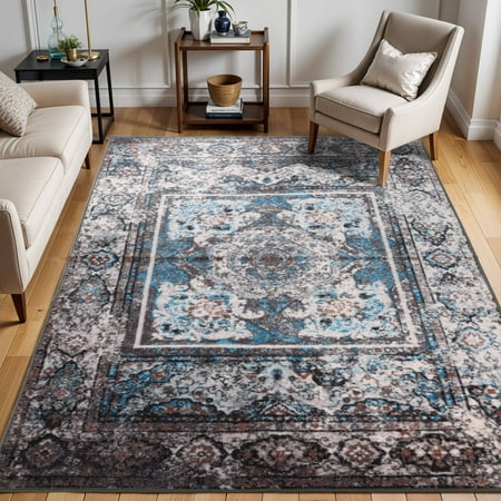 Nuloom SpinClean Hart Grey/Ivory, 5' x 8', Vintage, Soft and Cozy, High Traffic, Stain Resistant, Easy Clean, Durable, Machine Washable Area Rug for Bedroom, Living Room, Dining Space, Entryway