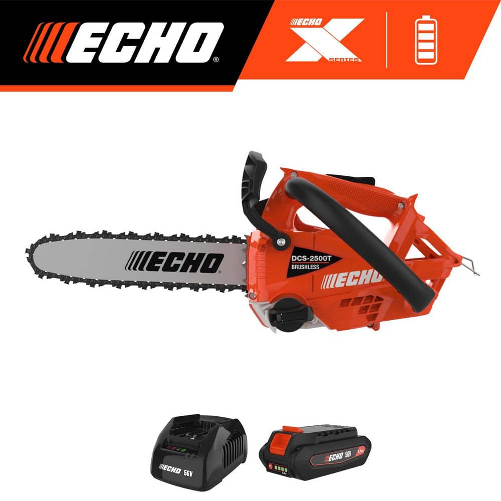 ECHO 56V 12 in. X Series Cordless Battery Top Handle Arborist Professional-Grade Chainsaw with 2.5Ah Battery and Charger