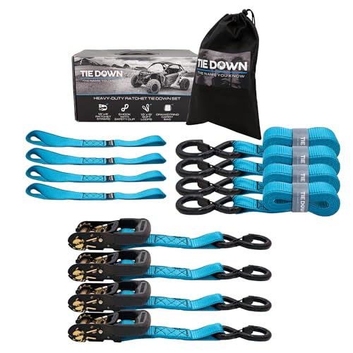 Tie Down 1.5 inch x 8 ft Blue Heavy Duty Ratchet Strap, 4-Pack Kit - 5208 lbs. Breaking Load Limit
