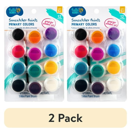 (2 pack) Hello Hobby Suncatcher Paints & Paintbrush, Window Art Paint