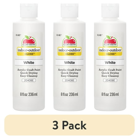 (3 pack) Apple Barrel 20408E Acrylic Craft Paint, Gloss Finish, White, 8 fl oz
