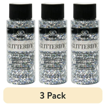 (3 pack) FolkArt Glitterific Acrylic Craft Paint, Glitter Finish, Silver, 2 fl oz