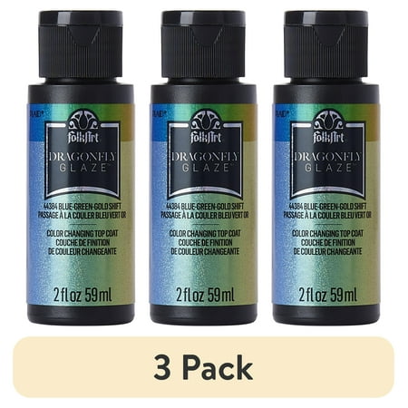 (3 pack) FolkArt 44384E Dragonfly Glaze Acrylic Paint, Gloss Finish, Blue-Green-Gold, 2 fl oz