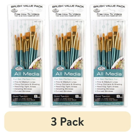 (3 pack) Royal & Langnickel - 8pc Gold Taklon Detail Variety Artist Paint Brushes | RSET-9186 |
