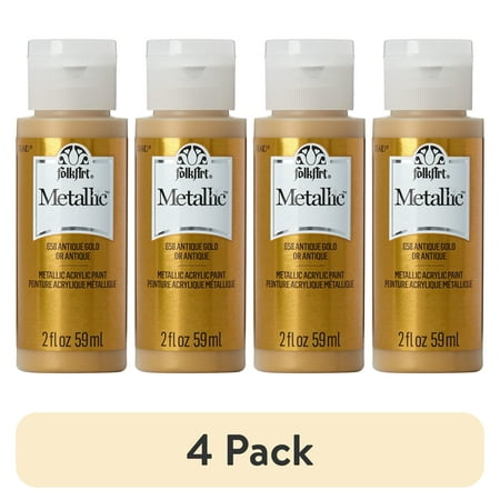 (4 pack) FolkArt Metallic Acrylic Craft Paint, Metallic Finish, Antique Gold, 2 fl oz
