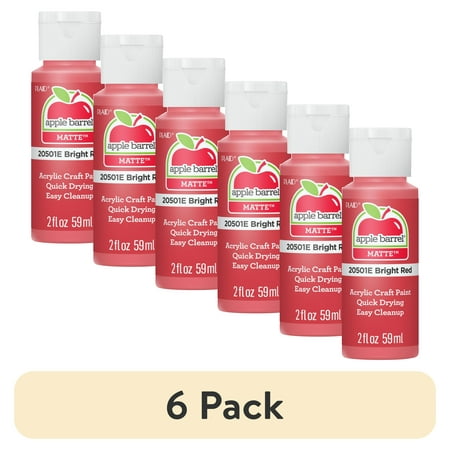 (6 pack) Apple Barrel Acrylic Craft Paint, Matte Finish, Bright Red, 2 fl oz