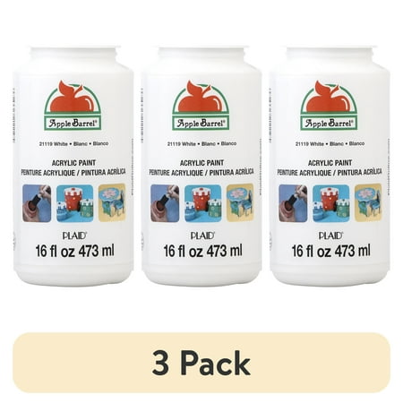 (3 pack) Apple Barrel 21119E Acrylic Craft Paint, Matte Finish, White, 16 fl oz.