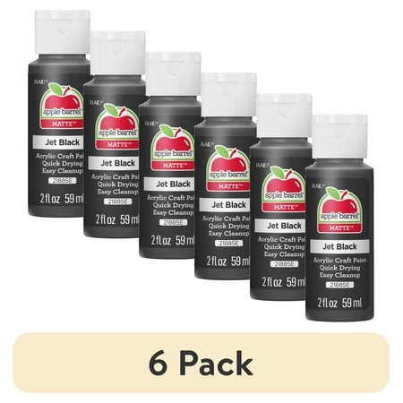 (6 pack) Apple Barrel 21885EX Acrylic Craft Paint, Matte Finish, Jet Black, 2 fl oz