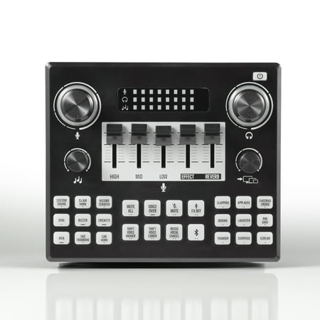 Pyle Bluetooth Mini Audio Podcast Mixer - Live Streaming For PC Computer iPhone Broadcasting Voice Changer V8 Sound Card with 12 Sound Effects,3 Inputs, Mic Input - PKSCRD208.5