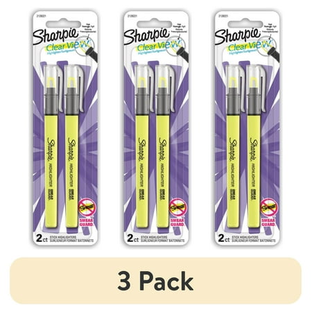 (3 pack) Sharpie Clear View Highlighter with See-Through Chisel Tip, Yellow, 2 Count