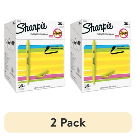 (2 pack) Sharpie Pocket Highlighters, Chisel Tip, Fluorescent Yellow, 36 Count